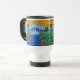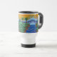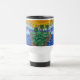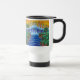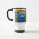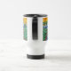 Une grande tasse de voyage, imprimée avec 2 images de mon illustration "de déjeuner de tsunami". La frontière noire autour de l'art l'encadre bien sur la surface blanche de la tasse