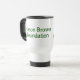 Cette tasse de voyage d'acier inoxydable comporte le maçon que la base de brun concernent un côté et le logo de MBF sur l'opposé.