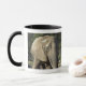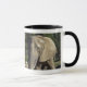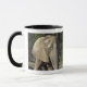 Une tasse de 11 onces avec l'image d'un éléphant frôlant dans le soleil de matin.