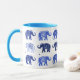 Tasse de café élégante avec un objet superflu et un motif de point bleus et de polka. Customisez pour ajouter n'importe quel texte que vous voulez. Grande tasse pour la maison ou le bureau.