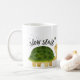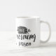 Pour toutes ces personnes qui comme un début lent dans le morninng, ceci sont une tasse d'amusement faite avec des effets d'aquarelle et la configuration d'une tortue illustrée mignonne d'un côté avec le texte "ralentissez le début" en haut. De l'autre côté est le texte "pas une personne de matin". Il y a des effets d'éclaboussure d'encre autour les des deux les textes. Conceptions de Natalie Kinnear