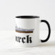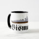 Tasse avec dessin du célèbre cuirassé allemand Bismarck de la seconde guerre mondiale avec le nom du navire écrit en lettres de fracture.