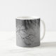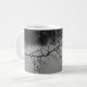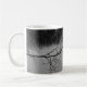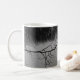 Mug avec une photo en noir et blanc d'un lac avec des branches d'arbres et de belles réflexions.