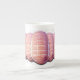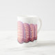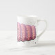 jolie porcelaine, bonne dimension effet brillant bien dans l'ensemble. Le motif et les couleurs sont réussis.Je trouve néanmoins dommage de ne pas occuper tout l'espace avc le motif car la partie rouge au dos de la tasse est trop présente et pas intéressante visuellement.