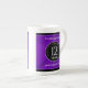 Célébrez le 12e anniversaire du mariage de soie avec quelques-unes de ces tasses commémoratives de porcelaine osseuse ! Un lettrage élégant sur un luxueux arrière - plan en soie violette ajoute une touche mémorable pour cette occasion spéciale et cette étape importante. Customisez avec les noms du couple, les dates du mariage et les messages de félicitations. Reverse affiche un design identique. Design © W.H. Sim, Tous droits réservés. Voir plus sur zazzle.com/expressionsoccasions
