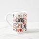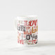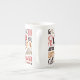 jolie porcelaine, bonne dimension effet brillant bien dans l'ensemble. Le motif et les couleurs sont réussis.Je trouve néanmoins dommage de ne pas occuper tout l'espace avc le motif car la partie rouge au dos de la tasse est trop présente et pas intéressante visuellement.