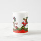 Une tasse vintage avec du charme de porcelaine tendre de Noël comportant un couple mignon de bonhomme de neige embrassant sous le gui.