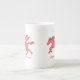 jolie porcelaine, bonne dimension effet brillant bien dans l'ensemble. Le motif et les couleurs sont réussis.Je trouve néanmoins dommage de ne pas occuper tout l'espace avc le motif car la partie rouge au dos de la tasse est trop présente et pas intéressante visuellement.