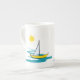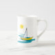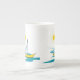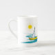 jolie porcelaine, bonne dimension effet brillant bien dans l'ensemble. Le motif et les couleurs sont réussis.Je trouve néanmoins dommage de ne pas occuper tout l'espace avc le motif car la partie rouge au dos de la tasse est trop présente et pas intéressante visuellement.