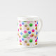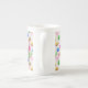 jolie porcelaine, bonne dimension effet brillant bien dans l'ensemble. Le motif et les couleurs sont réussis.Je trouve néanmoins dommage de ne pas occuper tout l'espace avc le motif car la partie rouge au dos de la tasse est trop présente et pas intéressante visuellement.