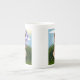 jolie porcelaine, bonne dimension effet brillant bien dans l'ensemble. Le motif et les couleurs sont réussis.Je trouve néanmoins dommage de ne pas occuper tout l'espace avc le motif car la partie rouge au dos de la tasse est trop présente et pas intéressante visuellement.