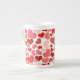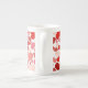 jolie porcelaine, bonne dimension effet brillant bien dans l'ensemble. Le motif et les couleurs sont réussis.Je trouve néanmoins dommage de ne pas occuper tout l'espace avc le motif car la partie rouge au dos de la tasse est trop présente et pas intéressante visuellement.