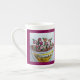 jolie porcelaine, bonne dimension effet brillant bien dans l'ensemble. Le motif et les couleurs sont réussis.Je trouve néanmoins dommage de ne pas occuper tout l'espace avc le motif car la partie rouge au dos de la tasse est trop présente et pas intéressante visuellement.