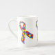 jolie porcelaine, bonne dimension effet brillant bien dans l'ensemble. Le motif et les couleurs sont réussis.Je trouve néanmoins dommage de ne pas occuper tout l'espace avc le motif car la partie rouge au dos de la tasse est trop présente et pas intéressante visuellement.