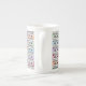 jolie porcelaine, bonne dimension effet brillant bien dans l'ensemble. Le motif et les couleurs sont réussis.Je trouve néanmoins dommage de ne pas occuper tout l'espace avc le motif car la partie rouge au dos de la tasse est trop présente et pas intéressante visuellement.