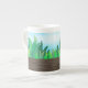 jolie porcelaine, bonne dimension effet brillant bien dans l'ensemble. Le motif et les couleurs sont réussis.Je trouve néanmoins dommage de ne pas occuper tout l'espace avc le motif car la partie rouge au dos de la tasse est trop présente et pas intéressante visuellement.
