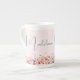 Rose, girly et mignon. Chocolat Chocolat Chaton à la chatte géant avec un chat dans un joli jardin fleuri sur un arrière - plan rose. Changez le nom de votre propre tasse personnalisée.