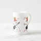 jolie porcelaine, bonne dimension effet brillant bien dans l'ensemble. Le motif et les couleurs sont réussis.Je trouve néanmoins dommage de ne pas occuper tout l'espace avc le motif car la partie rouge au dos de la tasse est trop présente et pas intéressante visuellement.