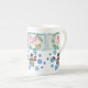 jolie porcelaine, bonne dimension effet brillant bien dans l'ensemble. Le motif et les couleurs sont réussis.Je trouve néanmoins dommage de ne pas occuper tout l'espace avc le motif car la partie rouge au dos de la tasse est trop présente et pas intéressante visuellement.