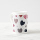 jolie porcelaine, bonne dimension effet brillant bien dans l'ensemble. Le motif et les couleurs sont réussis.Je trouve néanmoins dommage de ne pas occuper tout l'espace avc le motif car la partie rouge au dos de la tasse est trop présente et pas intéressante visuellement.