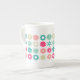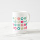 jolie porcelaine, bonne dimension effet brillant bien dans l'ensemble. Le motif et les couleurs sont réussis.Je trouve néanmoins dommage de ne pas occuper tout l'espace avc le motif car la partie rouge au dos de la tasse est trop présente et pas intéressante visuellement.