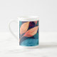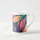 jolie porcelaine, bonne dimension effet brillant bien dans l'ensemble. Le motif et les couleurs sont réussis.Je trouve néanmoins dommage de ne pas occuper tout l'espace avc le motif car la partie rouge au dos de la tasse est trop présente et pas intéressante visuellement.