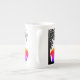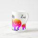 Café ou tasse à thé en porcelaine personnalisée avec design et nom d'éléphant coloré.