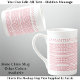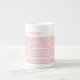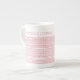 Ce mug en porcelaine d'os caché allie élégance intemporelle et modernité intelligente. A première vue, le design rose et blanc ressemble à des rangées soignées de lignes géométriques, mais un regard plus attentif révèle un message secret tissé dans le motif. Fabriqué à partir de porcelaine osseuse, il convient aussi bien à un thé sophistiqué l'après-midi qu'à votre rituel du café du matin. Ajoutez le nom/titre et votre message/devis et c’est une façon unique de mélanger le style classique à la créativité personnelle......PARFAIT POUR : Les amateurs de café et de thé qui préfèrent une touche de raffinement dans leur tasse, les professionnels qui aiment les tasses élégantes sur leur bureau, les étudiants qui veulent apporter un soupçon de sophistication pour les sessions d’étude, les familles ou les amis qui apprécient des cadeaux réfléchis qui équilibrent la qualité et l’originalité. C’est un choix merveilleux pour les anniversaires, les mariages, les anniversaires, les retraites, les fêtes de Noël ou les fêtes, ainsi qu’un régal élégant à déguster tous les jours.