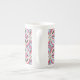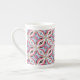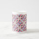 jolie porcelaine, bonne dimension effet brillant bien dans l'ensemble. Le motif et les couleurs sont réussis.Je trouve néanmoins dommage de ne pas occuper tout l'espace avc le motif car la partie rouge au dos de la tasse est trop présente et pas intéressante visuellement.