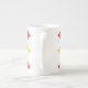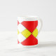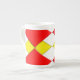 jolie porcelaine, bonne dimension effet brillant bien dans l'ensemble. Le motif et les couleurs sont réussis.Je trouve néanmoins dommage de ne pas occuper tout l'espace avc le motif car la partie rouge au dos de la tasse est trop présente et pas intéressante visuellement.
