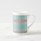 Café de porcelaine osseuse, tasse rose, turquoise et gris charbon. La turquoise peut être changée en n'importe quelle couleur pour correspondre à votre style et à votre décoration.