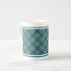 Bone china mug avec la famille Douglas ancien clan tartan motif. Plaid traditionnel écossais vintage de 1819 en vert et bleu clair, aux accents bleu royal et blanc.
