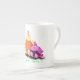 jolie porcelaine, bonne dimension effet brillant bien dans l'ensemble. Le motif et les couleurs sont réussis.Je trouve néanmoins dommage de ne pas occuper tout l'espace avc le motif car la partie rouge au dos de la tasse est trop présente et pas intéressante visuellement.