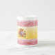 jolie porcelaine, bonne dimension effet brillant bien dans l'ensemble. Le motif et les couleurs sont réussis.Je trouve néanmoins dommage de ne pas occuper tout l'espace avc le motif car la partie rouge au dos de la tasse est trop présente et pas intéressante visuellement.