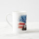 jolie porcelaine, bonne dimension effet brillant bien dans l'ensemble. Le motif et les couleurs sont réussis.Je trouve néanmoins dommage de ne pas occuper tout l'espace avc le motif car la partie rouge au dos de la tasse est trop présente et pas intéressante visuellement.