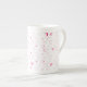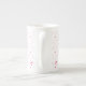 jolie porcelaine, bonne dimension effet brillant bien dans l'ensemble. Le motif et les couleurs sont réussis.Je trouve néanmoins dommage de ne pas occuper tout l'espace avc le motif car la partie rouge au dos de la tasse est trop présente et pas intéressante visuellement.