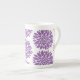 Bone china mug montré dans une jolie impression de fleurs violettes. Customisez cet objet ou achetez tel quel.