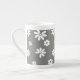 jolie porcelaine, bonne dimension effet brillant bien dans l'ensemble. Le motif et les couleurs sont réussis.Je trouve néanmoins dommage de ne pas occuper tout l'espace avc le motif car la partie rouge au dos de la tasse est trop présente et pas intéressante visuellement.