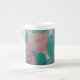 Le design floral contemporain original sur cette tasse de porcelaine osseuse a un look moderne, l'image schématique de fleurs roses et de feuilles est un motif d'art original. Le motif de style art abstrait élégant a été peint en aquarelle avec des contours noirs aléatoires autour des blocs de couleur. Si vous cherchez un petit quelque chose d'arty et différent, c'est la tasse pour vous.