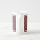 Tasse de porcelaine osseuse avec le motif tartan du clan moderne de la famille Fraser de Lovat. Plaid écossais vintage traditionnel de 1893 en rouge vif, bleu marine, vert forestier et blanc.