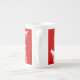 jolie porcelaine, bonne dimension effet brillant bien dans l'ensemble. Le motif et les couleurs sont réussis.Je trouve néanmoins dommage de ne pas occuper tout l'espace avc le motif car la partie rouge au dos de la tasse est trop présente et pas intéressante visuellement.