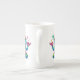 jolie porcelaine, bonne dimension effet brillant bien dans l'ensemble. Le motif et les couleurs sont réussis.Je trouve néanmoins dommage de ne pas occuper tout l'espace avc le motif car la partie rouge au dos de la tasse est trop présente et pas intéressante visuellement.
