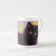 Bone China Mug avec un chaton noir Gustav Klimt ! Cette beauté aux yeux larges pose dans un champ vert de fleurs violettes. Un cadeau bien pensé pour les amateurs d'art amoureux des chats et autrichiens !