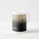 Parties scintillant à étincelle d'or et de noir Nom du monogramme Espresso Café ou thé ou de la Mug. Cela rend le cadeau parfait pour 16 ans, mariage, douche nuptiale, anniversaire, baby shower ou bachelorette pour quelqu'un qui aime le luxe glam et les styles chic.