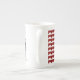 jolie porcelaine, bonne dimension effet brillant bien dans l'ensemble. Le motif et les couleurs sont réussis.Je trouve néanmoins dommage de ne pas occuper tout l'espace avc le motif car la partie rouge au dos de la tasse est trop présente et pas intéressante visuellement.