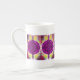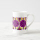 jolie porcelaine, bonne dimension effet brillant bien dans l'ensemble. Le motif et les couleurs sont réussis.Je trouve néanmoins dommage de ne pas occuper tout l'espace avc le motif car la partie rouge au dos de la tasse est trop présente et pas intéressante visuellement.