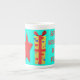jolie porcelaine, bonne dimension effet brillant bien dans l'ensemble. Le motif et les couleurs sont réussis.Je trouve néanmoins dommage de ne pas occuper tout l'espace avc le motif car la partie rouge au dos de la tasse est trop présente et pas intéressante visuellement.