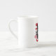 jolie porcelaine, bonne dimension effet brillant bien dans l'ensemble. Le motif et les couleurs sont réussis.Je trouve néanmoins dommage de ne pas occuper tout l'espace avc le motif car la partie rouge au dos de la tasse est trop présente et pas intéressante visuellement.