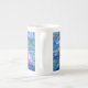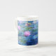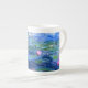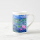 Un lys d'eau rose Monet dresse une tasse de porcelaine d'os avec de belles nénuphars roses flottant dans un étang bleu calme avec des nénuphars. Un grand cadeau Monet pour les amateurs d'impressionnisme et d'art français. Impressionnisme nature serein avec de belles fleurs et paysage d'étang pittoresque.