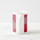 jolie porcelaine, bonne dimension effet brillant bien dans l'ensemble. Le motif et les couleurs sont réussis.Je trouve néanmoins dommage de ne pas occuper tout l'espace avc le motif car la partie rouge au dos de la tasse est trop présente et pas intéressante visuellement.